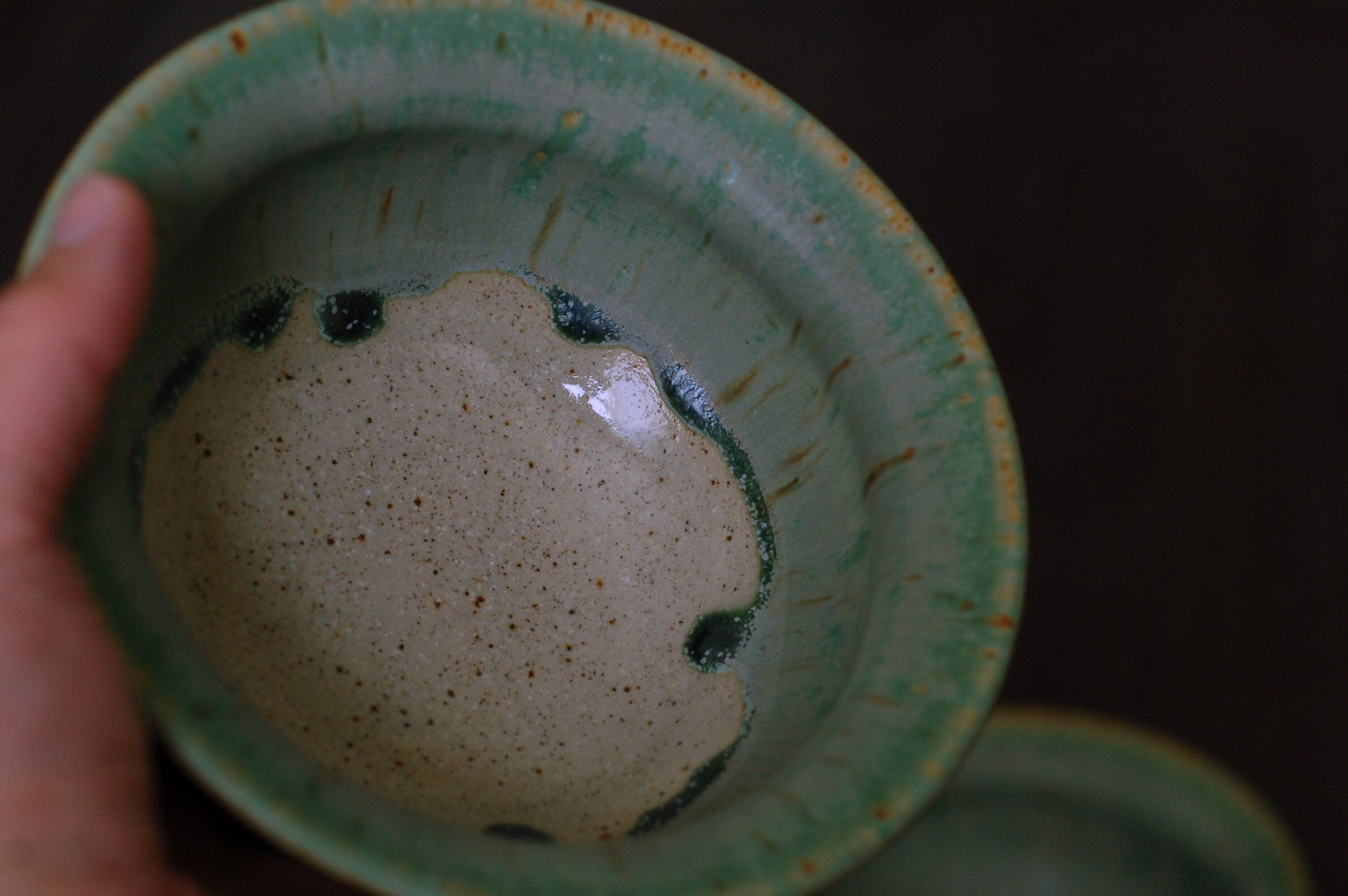 マットなmarble greenとガラス質の透明釉