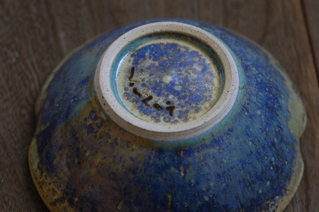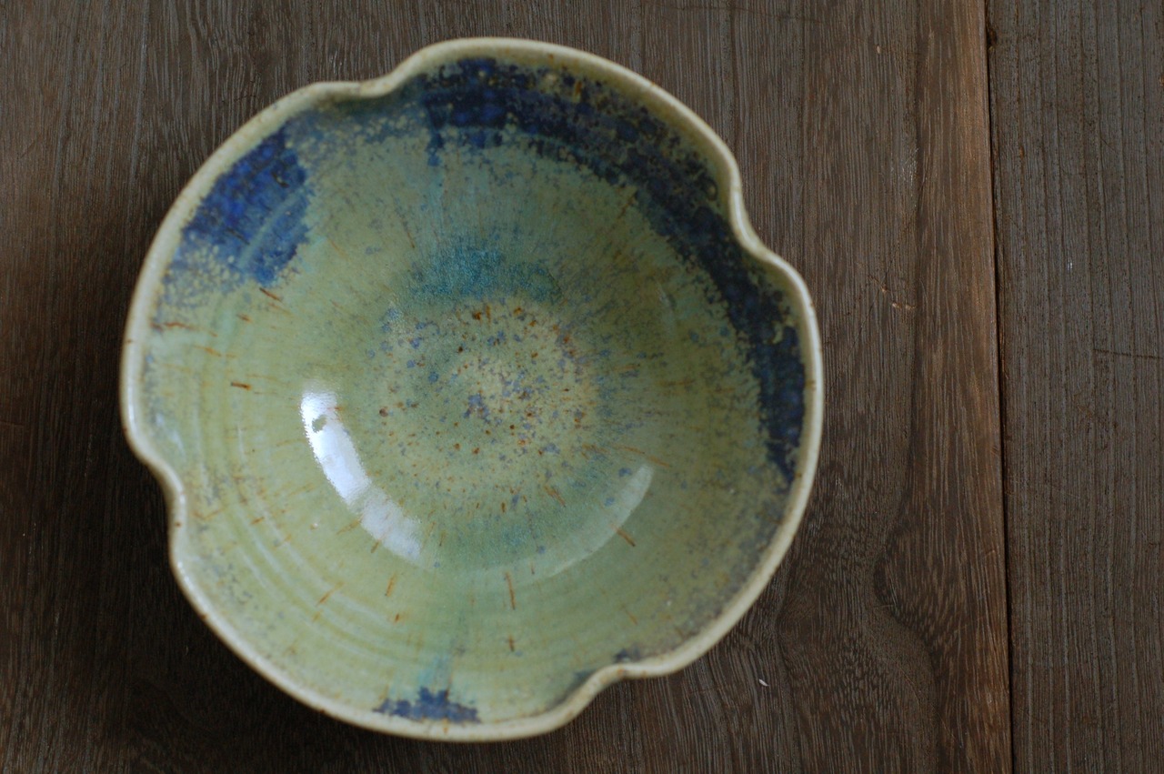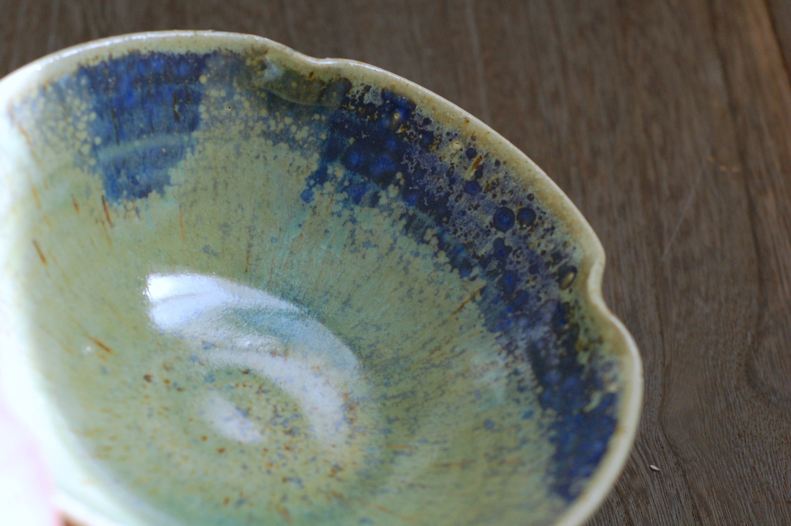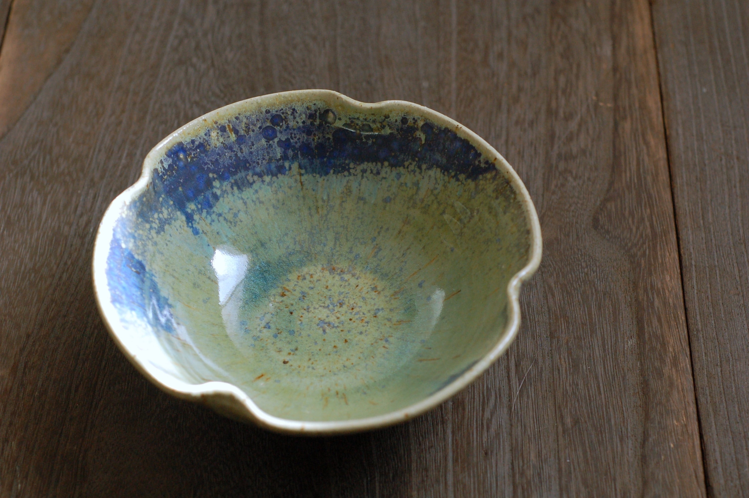 つるっとした質感の、緑や青が綺麗な釉薬です。