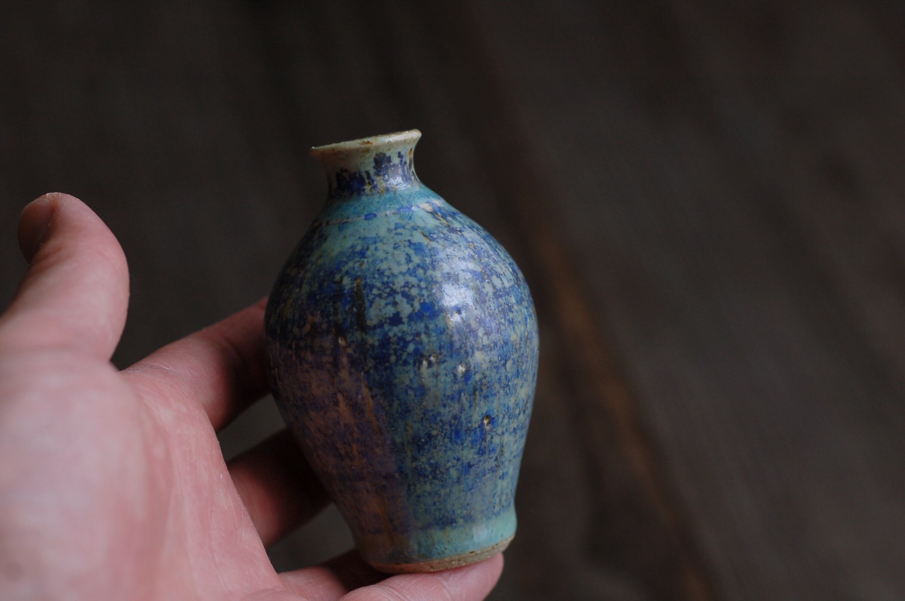 手のひらサイズのスラっと細い、小さな一輪挿しです。